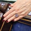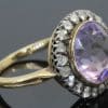 Beautiful and rare antique amethyst and diamond cluster ring. Set on 18kt gold, circa 1850, with a 4 carat amethyst and rose cut diamonds. Finger size N 1/2, we can adjust to fit any finger.