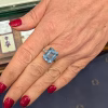Classic Art Deco aquamarine and diamond ring, set on 18kt white gold and platinum. 4.5ct step cut aqua, and short diamond baguettes. Finger size O, we can adjust to fit any finger.
