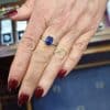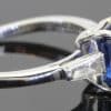 Superb sapphire ring by Bulgari. Set with a 2.3 carat step cut sapphire, and tapering baguette shoulders. Finger size N, we can adjust to fit any finger. Signed inside the band.