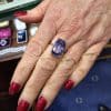 Beautiful sapphire solitaire ring, claw set on platinum. With a twelve carat cushion cut sapphire, Ceylon unheated. Finger size N 1/2, we can adjust to fit any finger.