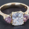 Exceptional diamond ring, by Nigel O’Reilly. Set with a two carat centre stone, D colour and VS clarity, and pink diamond trilliant cut shoulders, on a rose gold band set with pavé diamonds. Finger size L 1/2. All three stones with GIA reports.