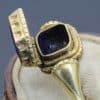 A poison ring or pillbox ring is a type of ring with a container under the bezel or inside the bezel itself which could be used to hold poison or another substance; they became popular in Western Europe during the Middle Ages. The poison ring was used either to slip poison into an enemy’s food or drink. A powder or liquid poison was usually stored in these instances. In other cases, the poison ring was used to facilitate the suicide of the wearer in order to preclude capture or torture. The purpose of the compartment in the ring was not only limited to poison, they were used to hold perfume, special items, talismans, keepsakes, small portraits and more.